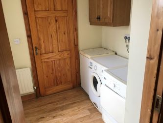 The house (built circa 2005) is laid out to provide an open plan kitchen / dining room, with built-in units and separate utility room. The living room has an open fireplace and overlooks the central green area.